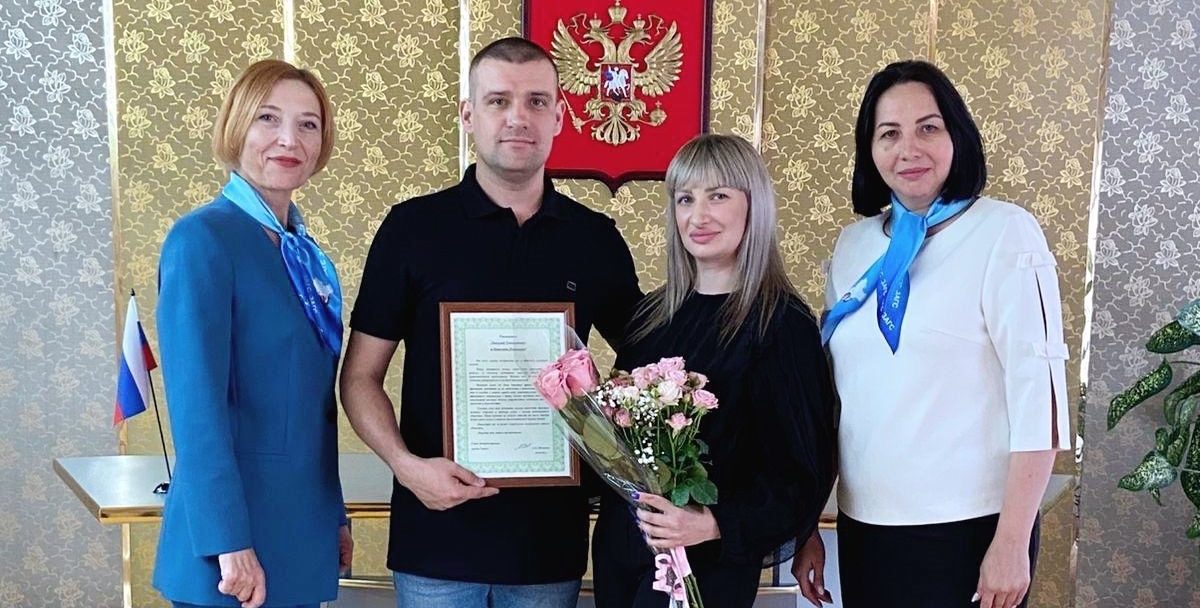 26 сентября в отделе ЗАГС Администрации города Гуково прошло чествование юбиляров семейной жизни Дмитрия и Кристины Ломовых. Семья Ломовых является многодетной. Они воспитывают трех дочерей, две из которых — первая двойня в 2025 году в городе!