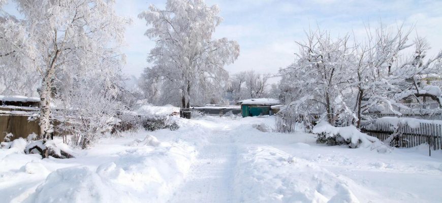 Считается, что сугробы на дачном участке — это благо, потому что снег служит естественным укрытием для растений, защищает корни от вымерзания и постепенно увлажняет почву при оттепелях.