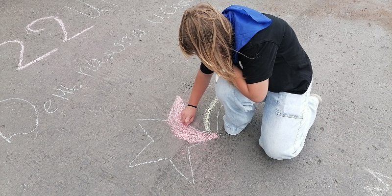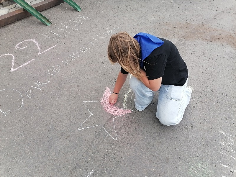 19 июня на площади клуба «Ростовский» прошёл конкурс рисунков на асфальте «Я рисую мир», посвящённый Дню памяти и скорби.