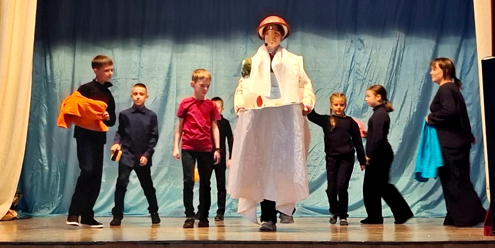 С приветственным словом к зрителям обратилась режиссер театра Валентина Алексеевна Николаева. Директор Городского Дворца культуры г. Гуково Сергей Викторович Клековкин поздравил участников театра с Днем знаний и вручил им сладкий подарок.