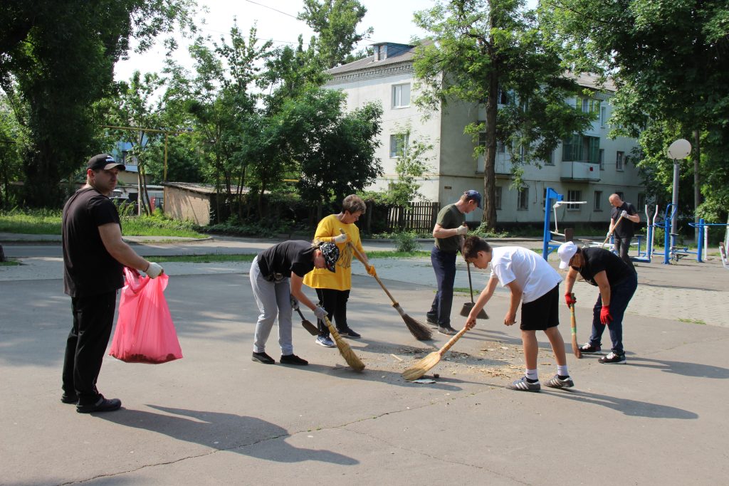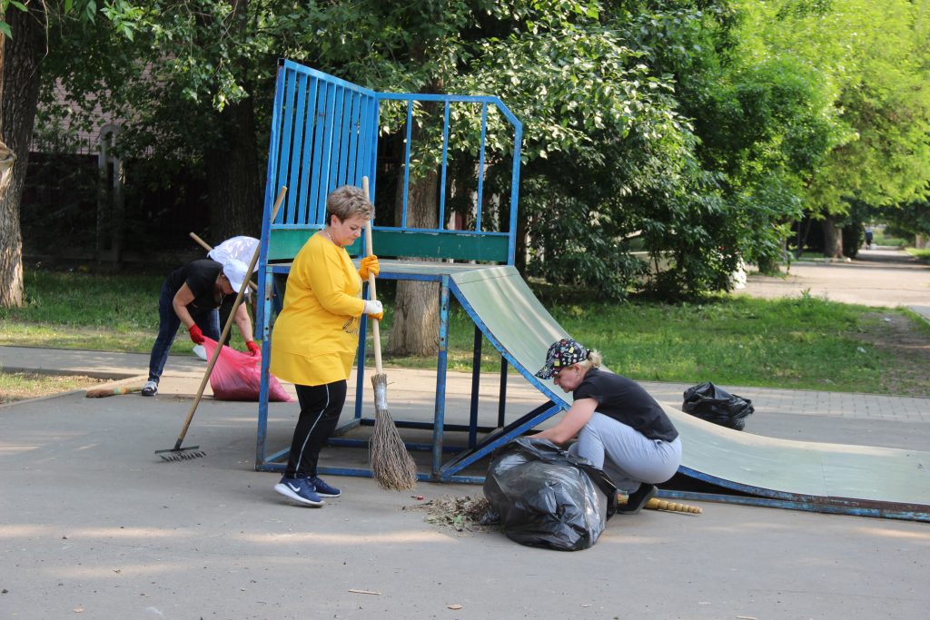 Вооружившись необходимым инвентарем, участники активно взялись за дело. Они очистили территорию от опавшей листвы, сухой травы и веток, тщательно подмели дорожки, собрали и вывезли мусор. Теперь площадка выглядит гораздо привлекательнее и готова принять всех любителей активного отдыха.