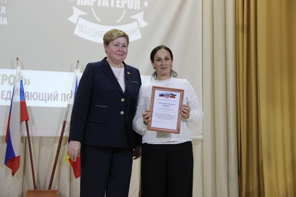 Особо Борис Владимирович отметил значительный вклад директора Дома детского творчества Марины Николаевны Доброходской. За ее неустанную работу по формированию патриотического сознания у детей и молодежи, активное продвижение знаний об отечественной истории и примерах мужества, а также за успешное проведение форума, Марина Николаевна была удостоена благодарственного письма от Гуковского местного отделения партии «Единая Россия».