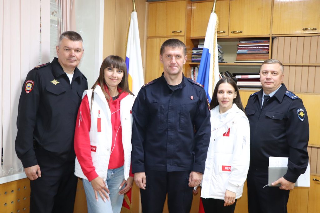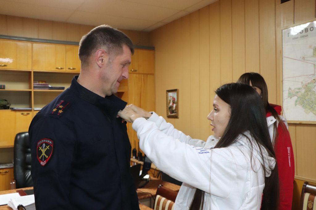 В завершение мероприятия специалисты местного отделения Движения первых Наталья Маньшина и Эльвира Багавиева вручили начальнику отдела, полковнику Владимиру Жгареву знак наставника Движения.
