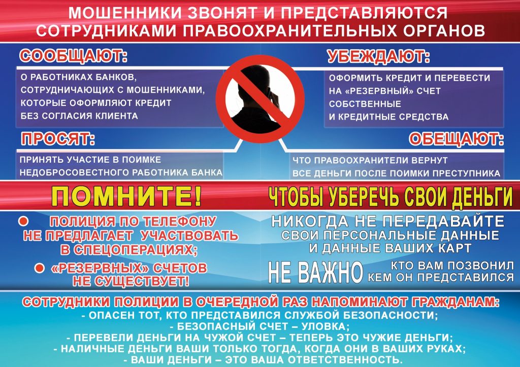 Правоохранительные органы Российской Федерации (МВД, прокуратура, ФСБ и другие) ни при каких обстоятельствах не будут предлагать (требовать) от граждан совершения противоправных действий, в том числе под предлогом возврата похищенных денежных средств.