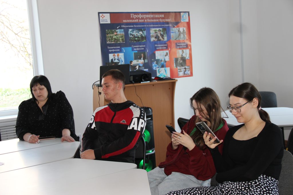 В заключение встречи специалист Центра занятости населения провела профориентацию, познакомив школьников и студентов с возможностями единой цифровой платформы «Работа России». Зарегистрировавшись на портале, любой гражданин может пройти тестирование, узнать о вакансиях, подать заявление на получение консультационных услуг.