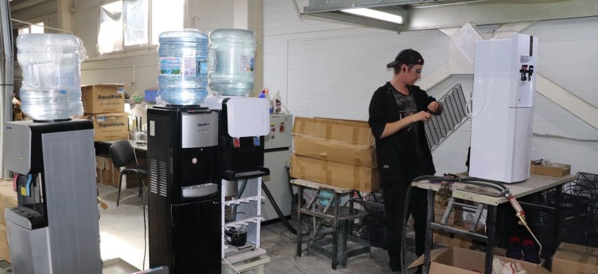 – К июню-июлю мы начнем розлив воды, здесь, в Гукове. А это означает, что на предприятии откроются десять новых вакансий. Основная линия по розливу и скважина находятся в поселке Камышеваха Аксайского района Ростовской области. Артезианская вода высокого качества – в нашем регионе очень востребована. Всего же на нашем основном производстве водяных кулеров в Гукове работает более 100 человек. Выпускаем разные модели: с нагревом и охлаждением, напольные и настольные, электронные и компрессорные водные диспенсеры, – рассказал Сергей Колтунов, главный инженер предприятия.