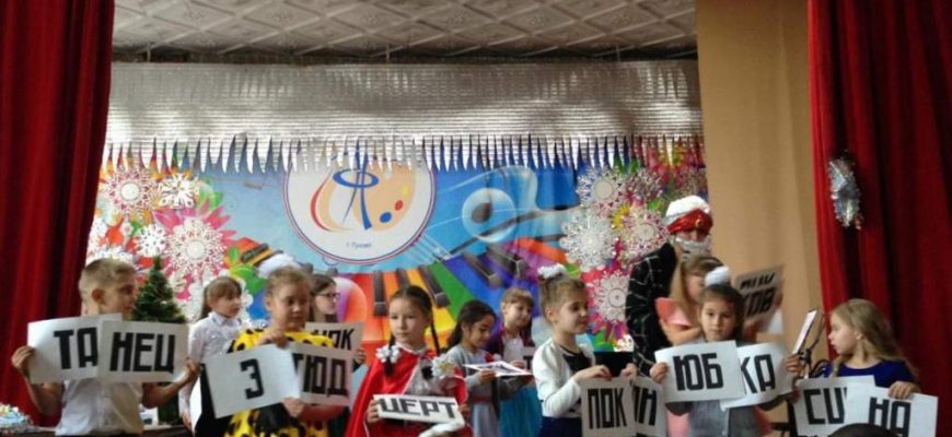Под таким названием в ДШИ им. И.О. Дунаевского состоялся традиционный новогодний праздник для первоклассников – посвящение в юные музыканты, художники, танцоры. 90 новых жителей страны искусств, несмотря на происки агентов Бабы Яги, смогли преодолеть все трудности и выполнить задания Деда Мороза. Агенты из Какофонии, Косолапии и острова Клякс не сумели помешать первоклассникам и сбить их с верного пути. Дети успешно продемонстрировали свои знания, навыки и умения. Праздник получился очень насыщенным и полезным. Ребята узнали много интересного о школе, получили новые знания, подружились друг с другом. К завершению путешествия ученики всех отделений вместе с Дедом Морозом и Снегурочкой произнесли клятвы верности искусству.