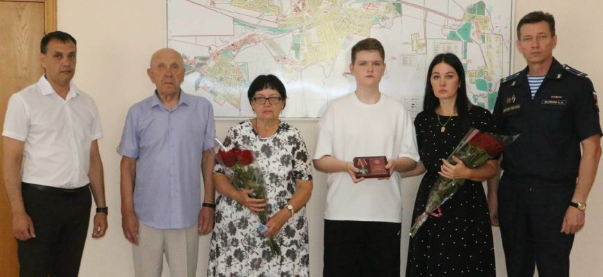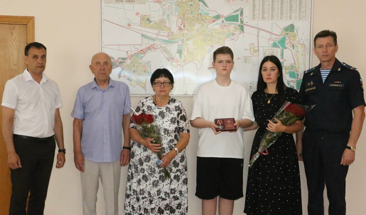 Эту высокую государственную награду семье погибшего передали глава Администрации города Гуково Андрей Шеенков и военный комиссар городов Гуково и Зверево Александр Майков.