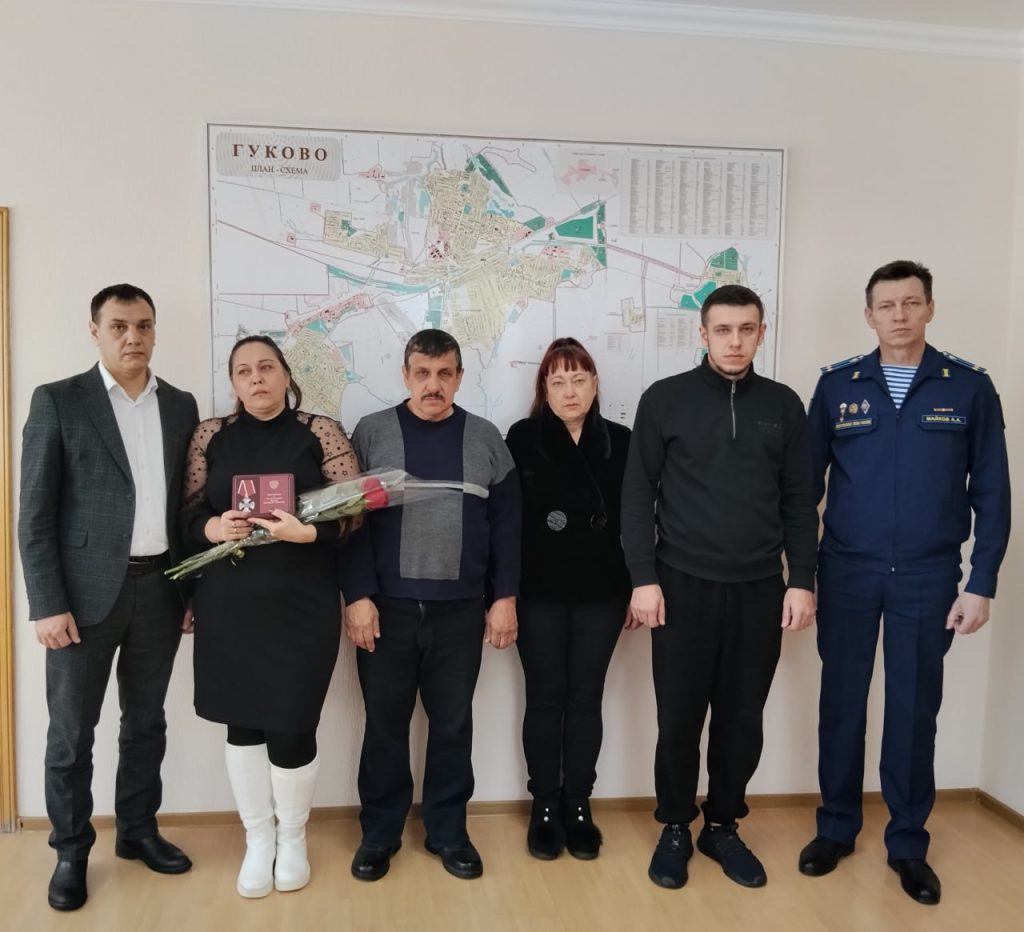 Глава города Андрей Шеенков совместно с военным комиссаром городов Гуково и Зверево Александром Майковым передали семьям погибших гуковчан государственные награды.