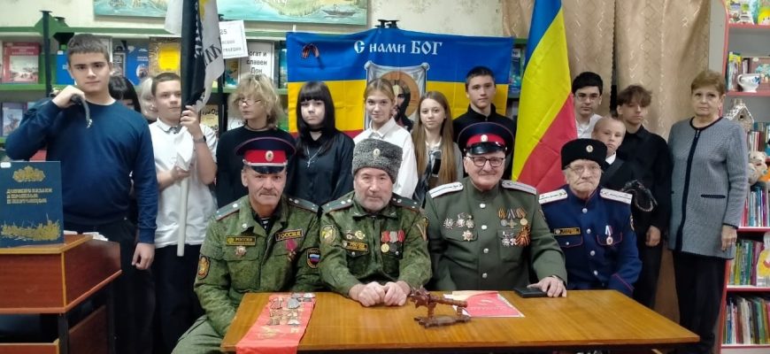 13 ноября, в городской библиотеке №1 прошёл День краеведческих знаний для учащихся 8 «Б» класса школы №1 (классный руководитель О.Ф. Щербакова). Почётными гостями мероприятия были казаки Гуковского Юрта Черкасского округа: есаул В.А. Яговкин, хорунжий В.И. Ляшов, сотник А.В. Овсов, хорунжий Н.Б. Горбань.