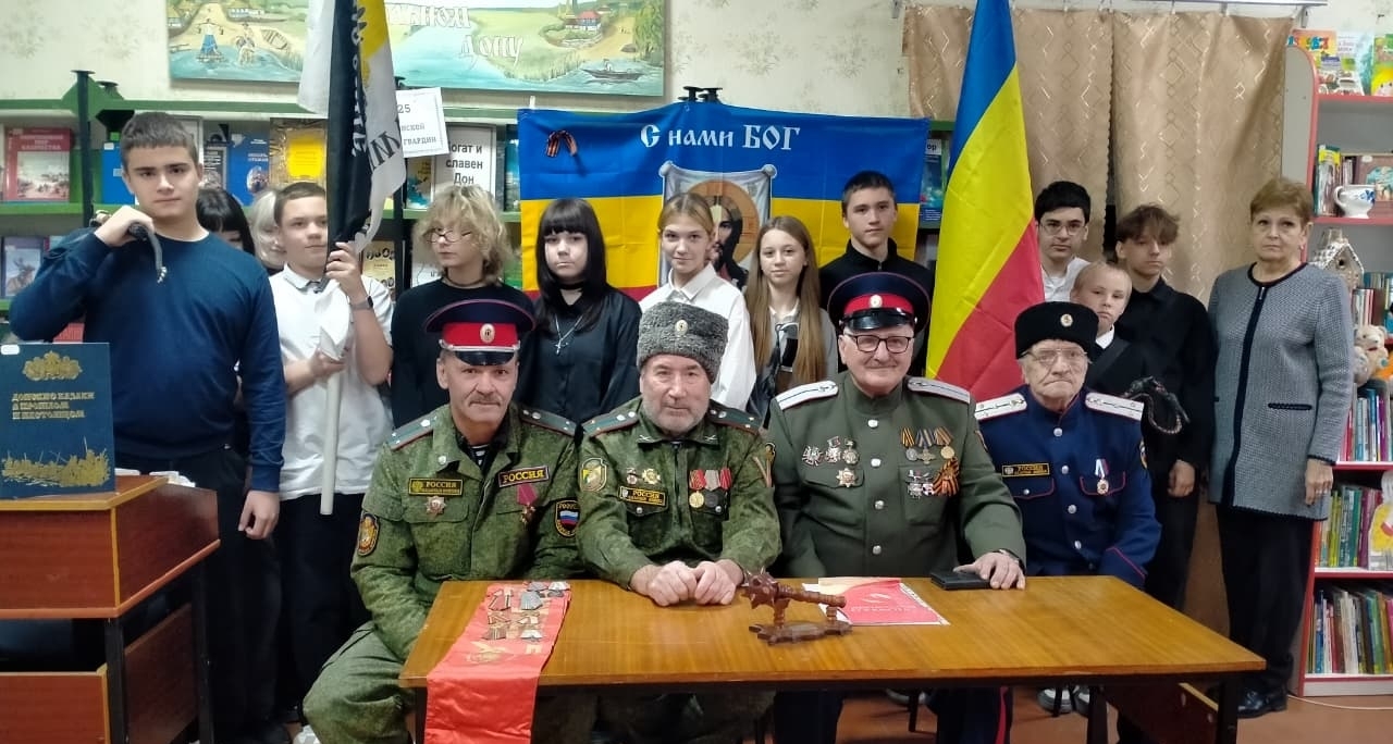13 ноября, в городской библиотеке №1 прошёл День краеведческих знаний для учащихся 8 «Б» класса школы №1 (классный руководитель О.Ф. Щербакова). Почётными гостями мероприятия были казаки Гуковского Юрта Черкасского округа: есаул В.А. Яговкин, хорунжий В.И. Ляшов, сотник А.В. Овсов, хорунжий Н.Б. Горбань.