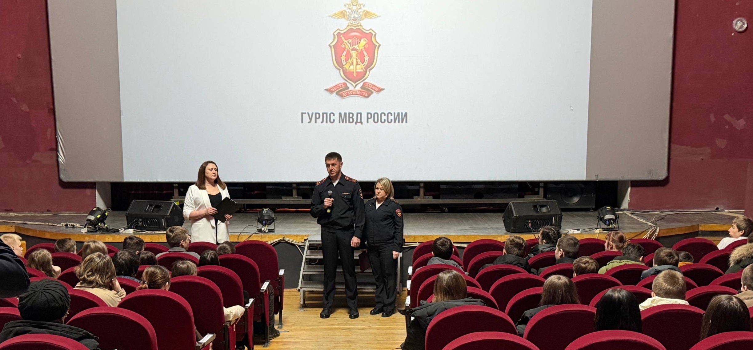 В рамках оперативно-профилактической акции «Неделя большой профилактики», руководством полиции города Гуково была организована встреча на базе Городского Дворца культуры с учащимися «полицейского» класса — учениками 8 «В» класса Лицея № 24 г. Гуково, а также с учащимися 8-х и 10-х классов общеобразовательных школ города Гуково.