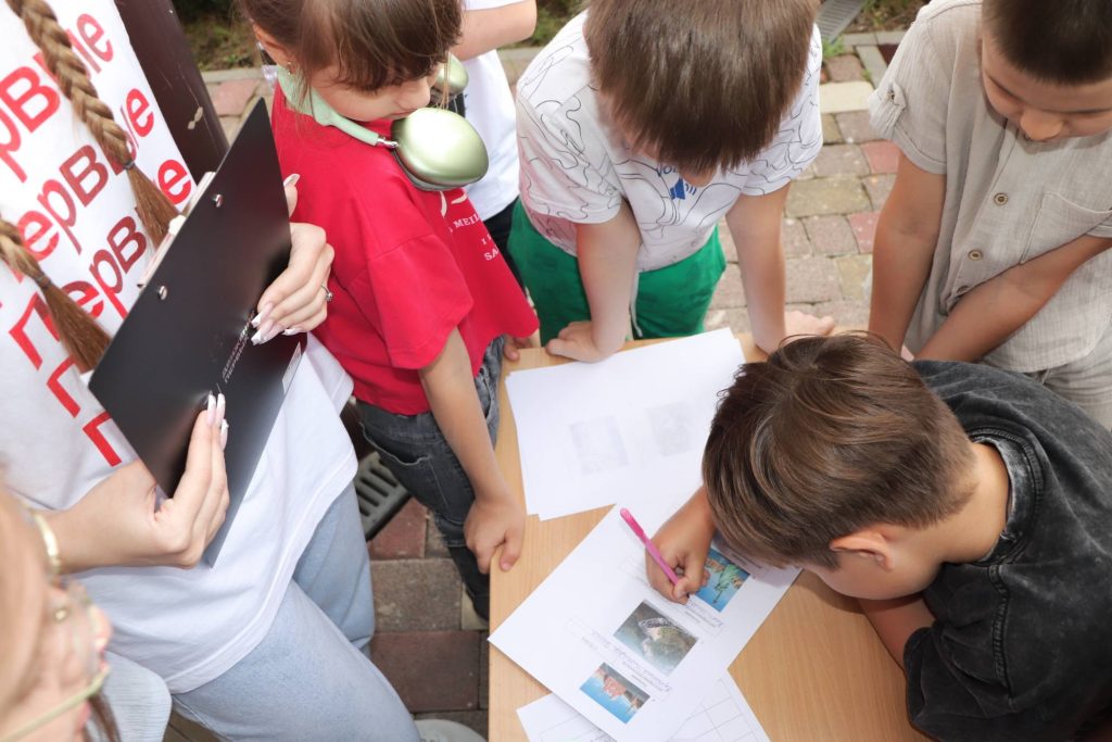 Участники отвечали на интересные вопросы о мировых достопримечательностях и волонтёрском движении, а также отгадывали загадки о школьных принадлежностях.