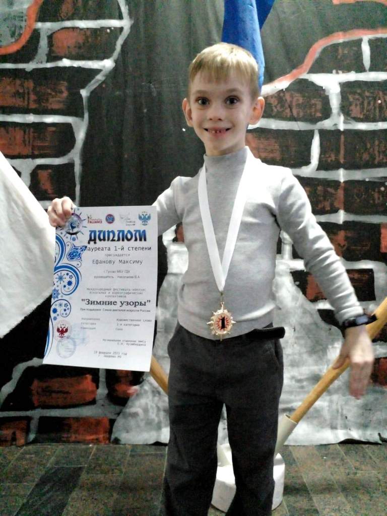 В номинации «Художественное слово» воспитанник образцового детского театра «Улыбка» Максим Ефанов покорил членов жюри своей артистичностью прочитав выразительно и эмоционально стихотворение «Мойдодыр» Корнея Чуковского и получил Диплом Лауреата 1-й степени.