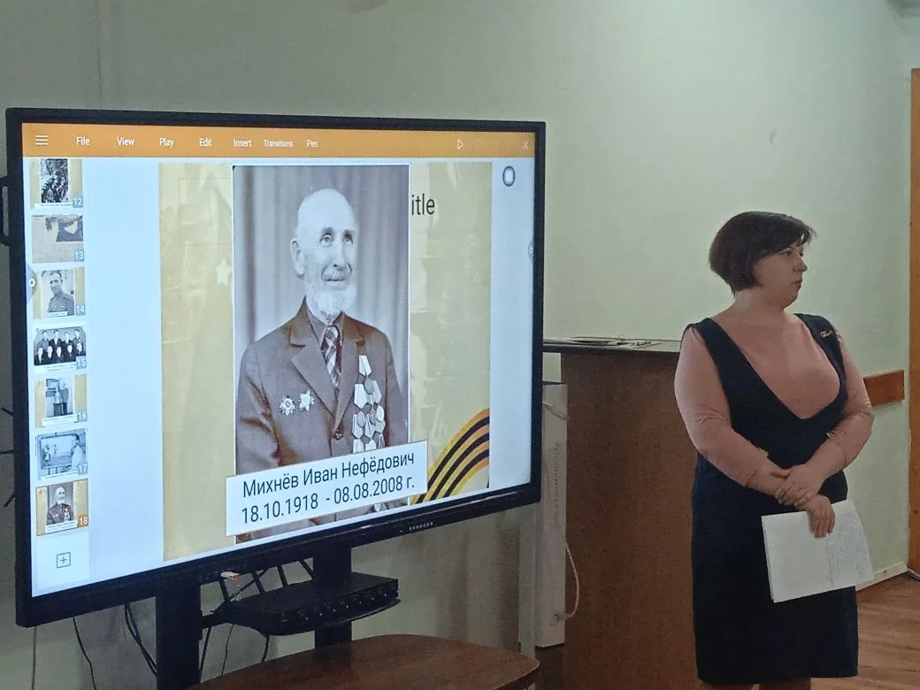 Поистине память о подвиге народа и каждая личная история защитника Отечества должна бережно передаваться из поколения в поколение. 19 февраля в Гуковском строительном техникуме состоялась встреча студентов с основателем и руководителем проекта «Дневники деда» Олесей Владимировной Михнёвой. В ходе мероприятия обучающимся были представлены уникальные и бесценные экспонаты, рассказывающие о жизни и боевом пути своего деда Ивана Нефёдовича Михнёва, прошедшего всю Великую Отечественную войну от первого до последнего дня.