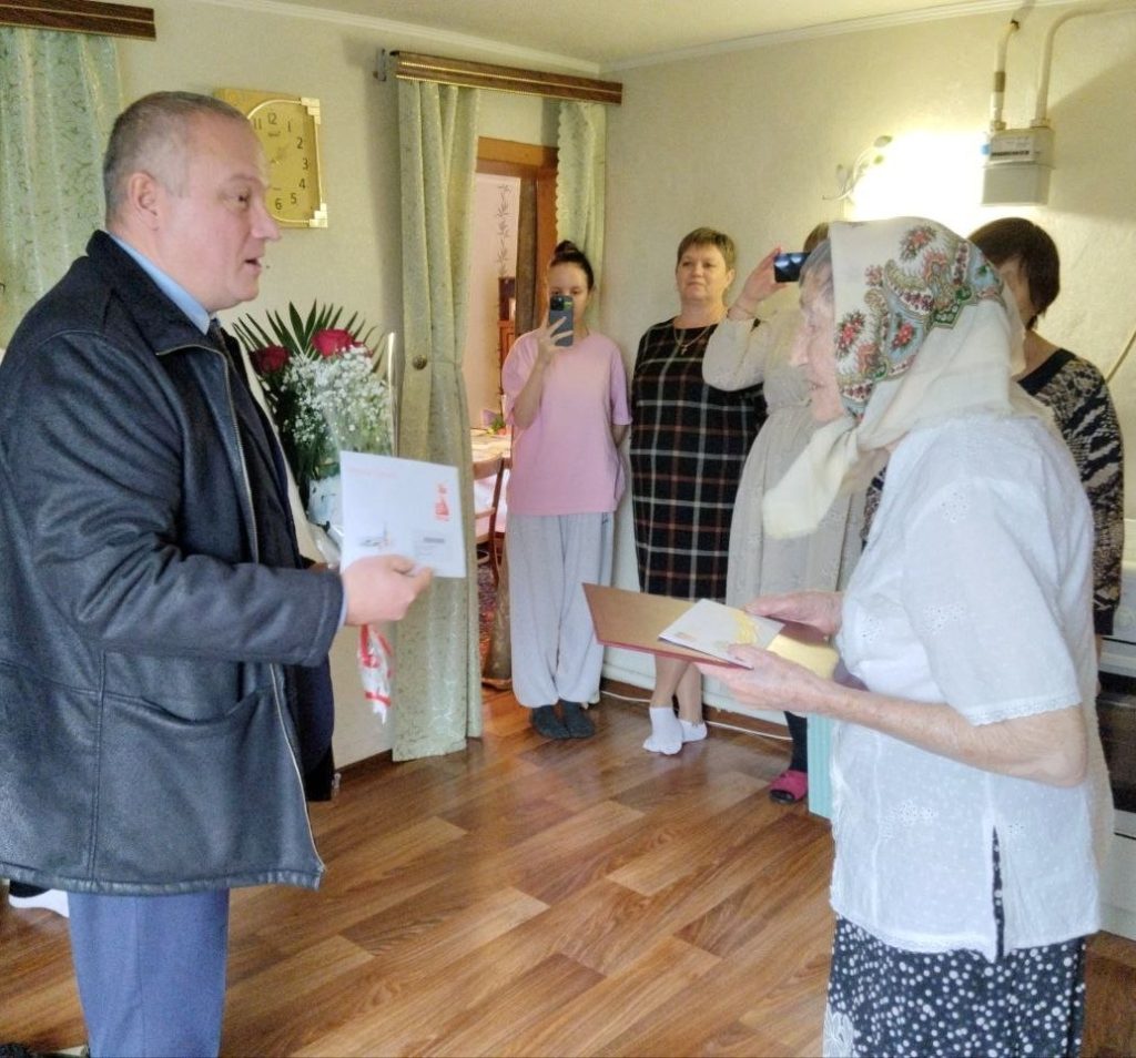 Вчера свой 95-летний юбилей отмечала труженица тыла Зоя Максимовна Марченко. Поздравил именинницу и вручил персональные поздравления Президента РФ Владимира Путина, главы донского региона Юрия Слюсаря и Главы города Гуково Андрея Шеенкова заместитель главы Администрации Дмитрий Климов.