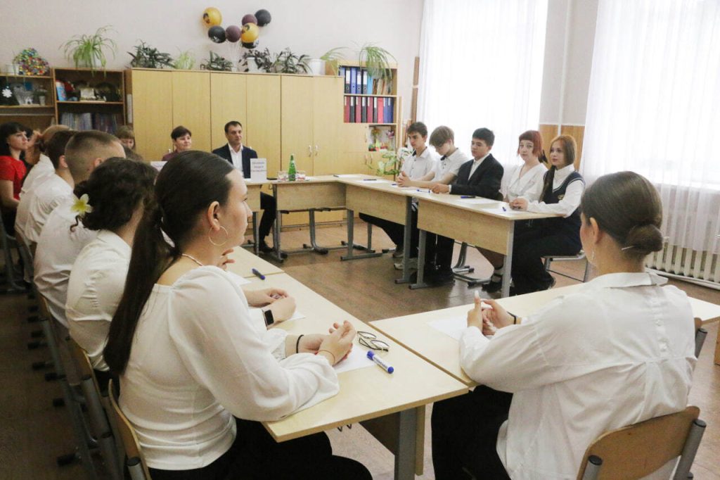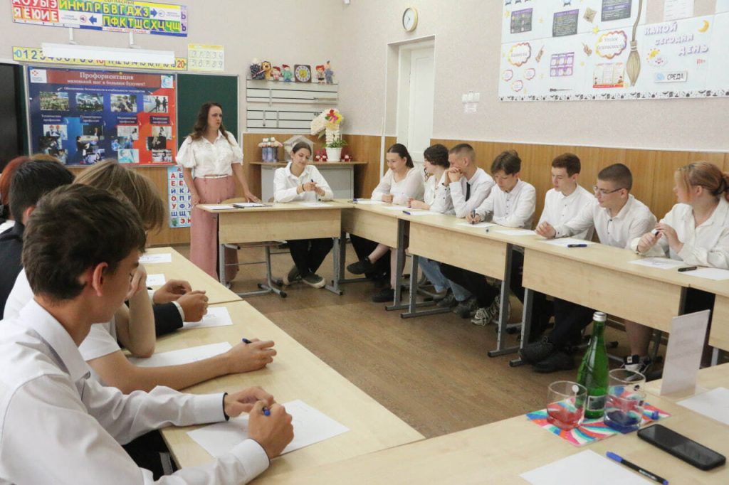 Сегодня в пришкольном лагере школы №22 состоялись «Разговоры о важном со значимой личностью». С учениками 7-9 классов встретились глава Администрации города Гуково Андрей Шеенков, его заместитель Елена Голикова и заведующий Отделом образования Татьяна Лысенко.