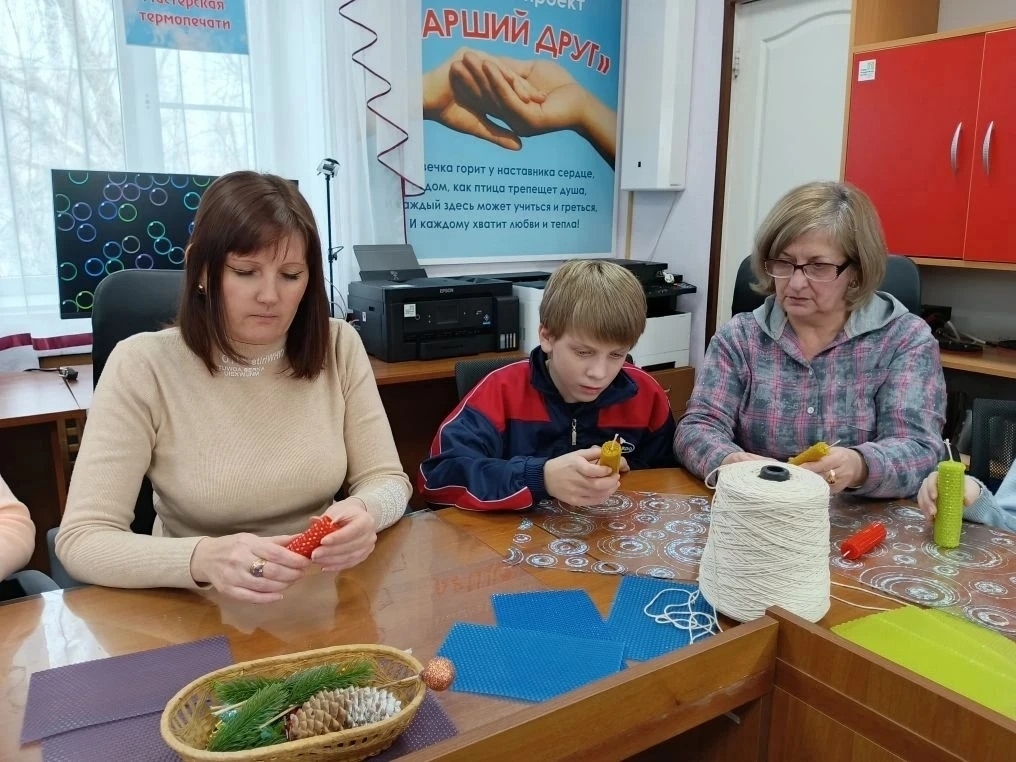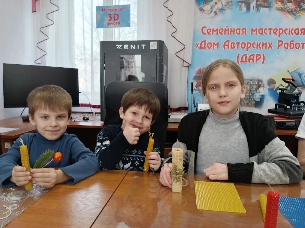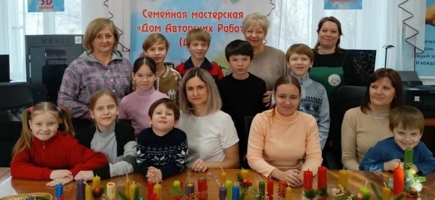 В теплой атмосфере Семейной мастерской «Дом Авторских работ (ДАР)» семьи-участники соткали из вощиновых сотов нежные катаные свечи – символы света и тепла для героев на передовой.