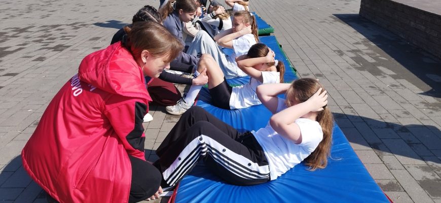 Мальчики и девочки выполняли упражнения на скорость, гибкость и выносливость. Юные ГТОшки попробовали свои силы в челночном беге, наклоне вперед стоя на гимнастической скамье, поднимании туловища из положения лежа на спине, сгибании и разгибании рук в упоре лежа, прыжках в длину с места, беге на 10 метров.
