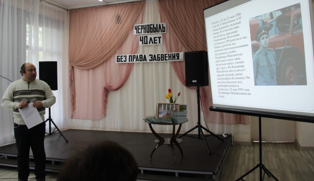 23 апреля в Центральной городской библиотеке состоялась презентация книги Владимира Георгиевича Попова «Чернобыль. 40 лет без права забвения», которая стала поводом для встречи гуковской молодежи с героями-ликвидаторами, непосредственными участниками описываемых событий и создателями книги.