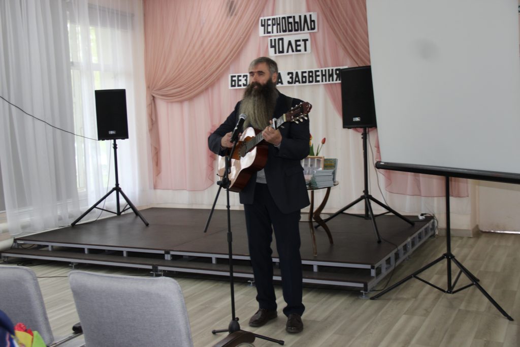 Ветеран Горноспасательной службы, полный кавалер знака «Шахтерской славы» Сергей Константинович Сальков проникновенно исполнил песню на стихи поэта Андрея Николаевича Иванова «Чернобыльцы».