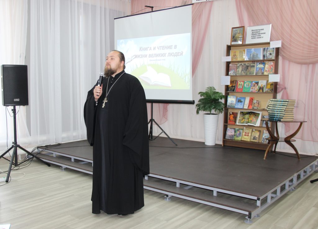 Далее слово было предоставлено Иерею прихода храма великомученика Пантелеимона в г. Гуково отцу Андрею. Он отметил важность чтения книг, особенно таких, как Библия и Псалтырь. При их прочтении у человека развиваются лучшие качества – доброта и милосердие, любовь и уважение.