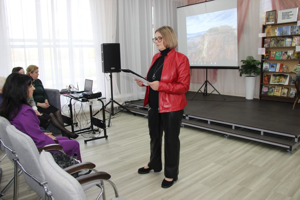 Тема Чтений — «Воспитание духовно-нравственной культуры через книгу». Специалист Центральной городской библиотеки Марина Кром напомнила присутствующим, что библиотека располагает всем необходимым для реализации планов по совершенствованию и продолжению работы по духовному воспитанию молодежи, воспитанию настоящих патриотов и граждан своей страны, обладающих высокими морально-этическими качествами. Это и большой выбор литературы по всем отраслям знаний, в том числе и духовно-нравственной, и налаженные связи с образовательными учреждениями города, проведение совместных праздников, тематических мероприятий, поэтических конкурсов.