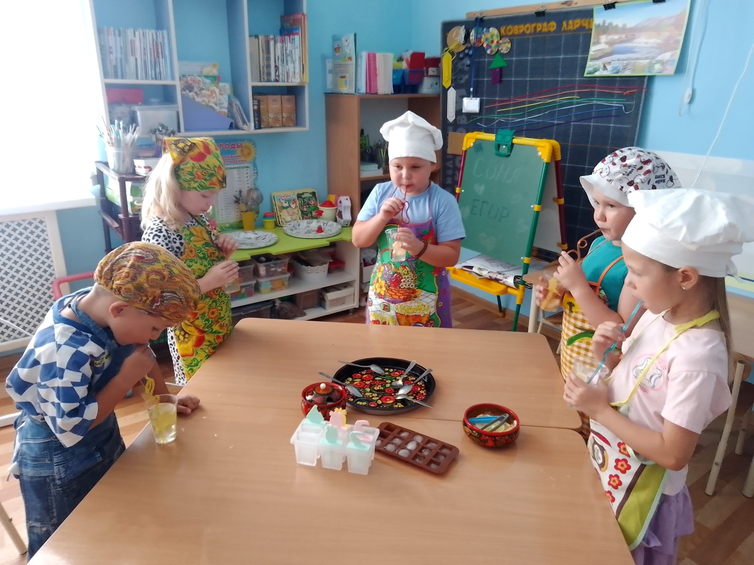 Наши ребята создали карты рецептов аппетитного фруктово-ягодного пирога и пиццы. Маленькие кулинары побывали в необычной для себя роли поварят и самостоятельно приготовили летний, ароматный лимонад.