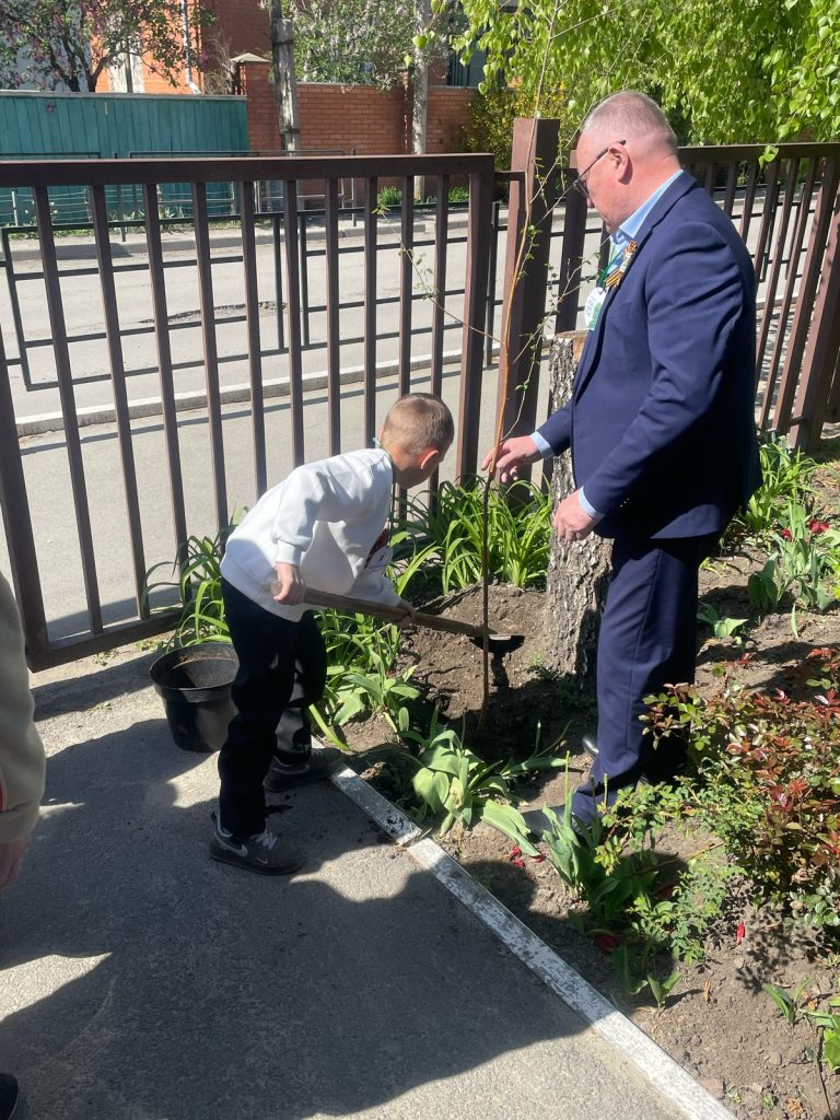 В этот день на территории детского сада были высажены молодые саженцы берез в память об участниках Великой Отечественной войны: рядовом взвода автоматчиков 4 Украинского фронта, 695-го стрелкового полка, 221 Мариупольской дивизии — Николае Архиповиче Плющ и младшем сержанте партизанского отряда имени Сергея Лазо — Степане Филипповиче Панушкине, а также в честь старшего лейтенанта первой роты 89 танкового полка Николая Николаевича Михайлова, который погиб 14 января 2025 года при исполнении воинского долга во время проведения специальной военной операции на Украине.
