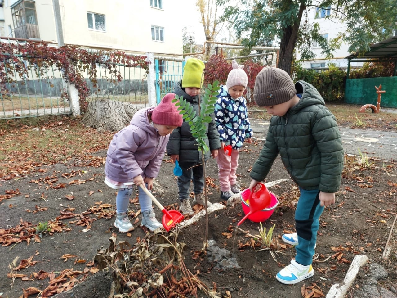 В рамках осеннего Дня древонасаждений в детском саду «Ромашка» прошла акция «Цветущий сад!».