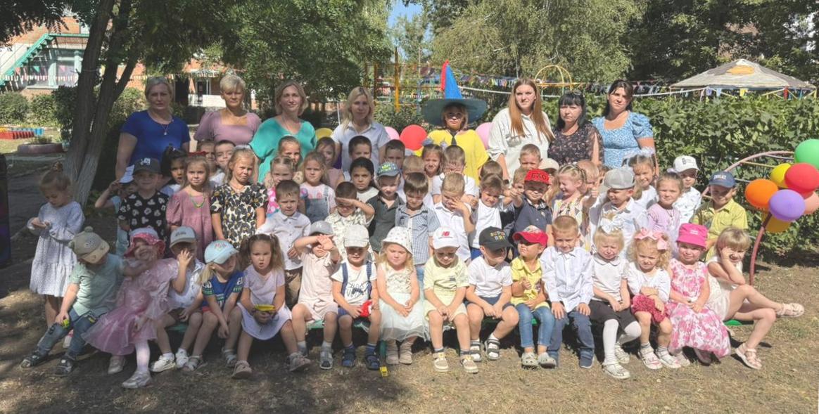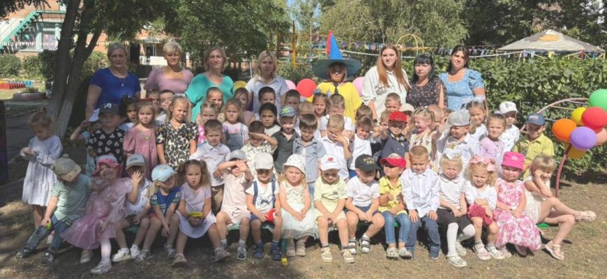 В нашем детском саду «Сказка» первый день нового учебного года прошел, как всегда, ярко и эмоционально. Весёлый праздник «Путешествие в сказочную страну с Незнайкой» начался с забавной игры-кричалки «Привет». А затем в гости к ребятам пришел озорной Незнайка из страны Знаний. Вместе с ним дети пели, танцевали, участвовали в конкурсах, читали стихи, рисовали на асфальте, играли в различные игры: «Собери игрушки в корзины», «Хвостики», «Угадай сказочного героя», «Да – нет», «Отгадай букву», «Сделай круг из числа».