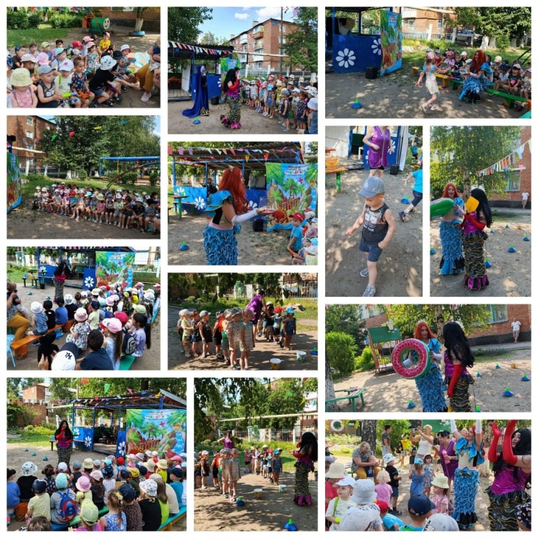 Дети ждали гостей с нетерпением, ведь все любят плескаться, соревноваться в ловкости и смелости. А ещё конечно играть с Нептуном и его друзьями в весёлые игры. Удивительный праздник подарил Нептун ребятам в жаркий летний день! Дошколята участвовали в различных приключениях: «попали в подводное Царство», где окунулись в «пучину ярких событий» — играли в игры, соревновались в эстафетах, отгадывали загадки.