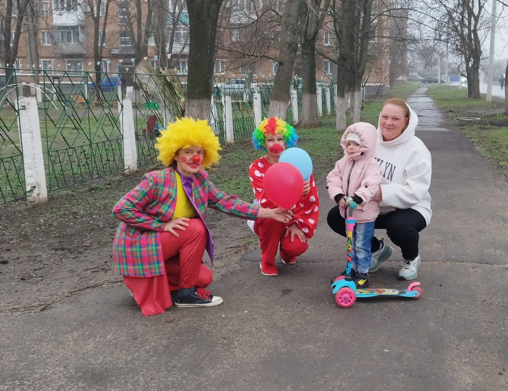 Развлечение с клоунами и сказочными персонажами добавило изюминки в происходящее действие. Загадки-шутки, юмористические конкурсы, веселые эстафеты, песни и танцы разнообразили тематику Дня смеха.