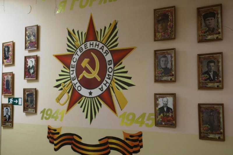 Рядом висят фотографии ветеранов Великой Отечественной войны. Связь поколений не прерывается, мы помним и чтим героев прошлого и настоящего.