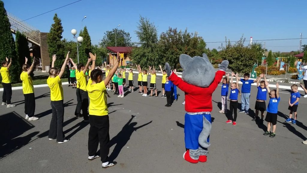 Волчонок Макар провёл с участниками разминку, а затем 16 девчонок и 17 мальчишек прошли испытания комплекса ГТО.
