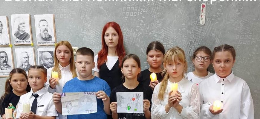 В ходе акции педагоги рассказали ребятам о трагедии, показали видеоролики, прочли стихи, минутой молчания почтили память погибших во время войн и террористических актов.