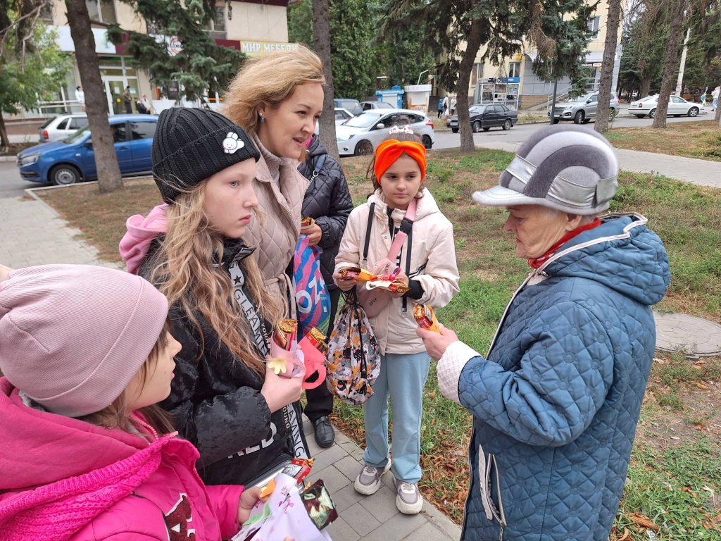 Затем все ребята приняли участие в акции дарения подарков «С днем мудрости и уважения», они подарили сувениры, сделанные с любовью своими руками дедушкам и бабушкам у городского фонтана.