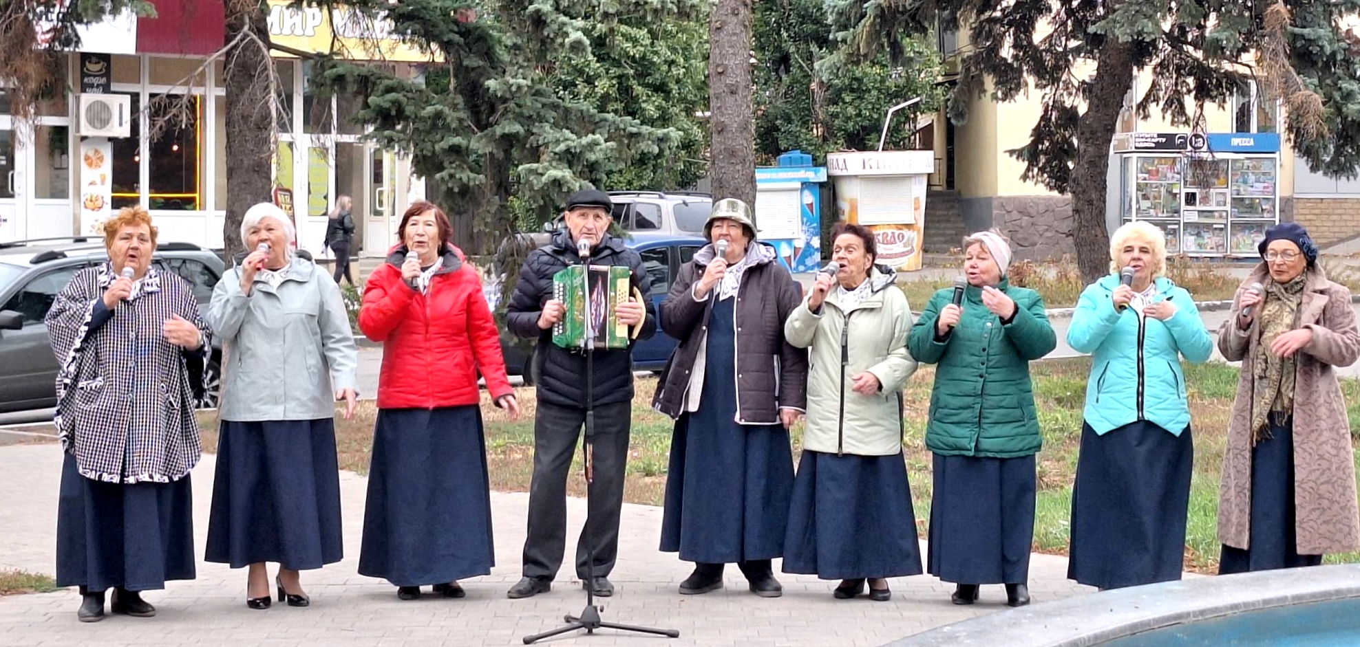 Далее у городского фонтана состоялась праздничная программа «Для тех, чью осень не покинула весна», посвященная Дню пожилого человека.
