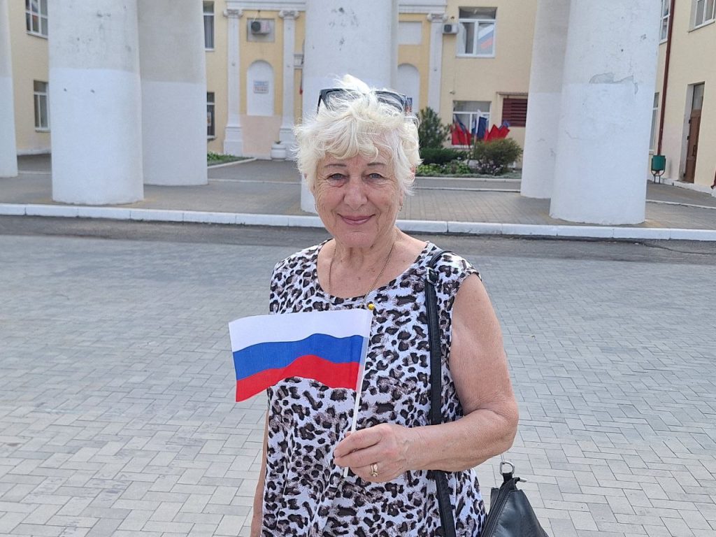 Они поздравили жителей и гостей города с праздником и вручили ленточки триколор и российские флажки.