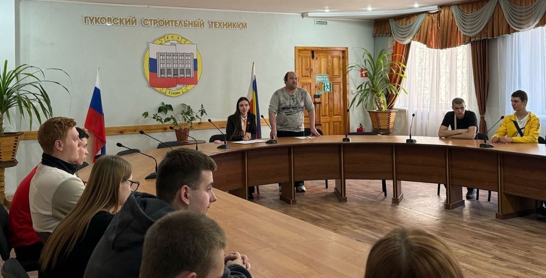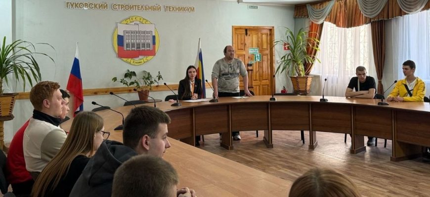 24 апреля в Гуковском строительном техникуме Советником директора по воспитанию и связям с детскими общественными объединениями Э.Ю. Енгояном был организован открытый диалог обучающихся техникума с представителем Молодёжного парламента при Гуковской городской Думе Эльвирой Ренатовной Багавиевой.