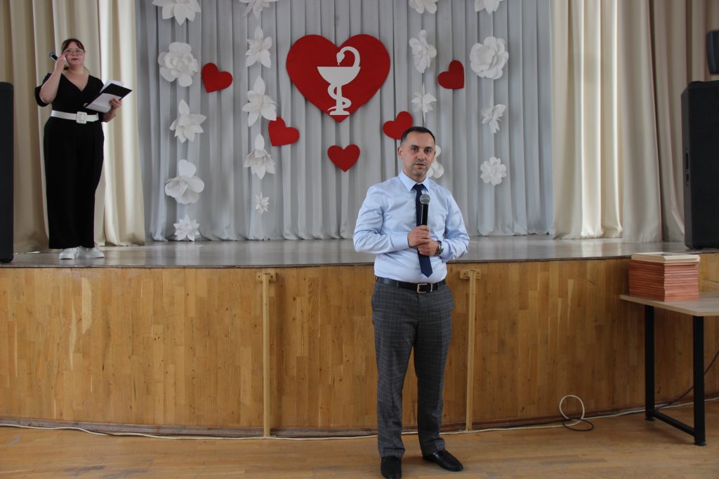 Чтобы работать в сфере здравоохранения, необходимо призвание. Не зря у медицинских работников существует высказывание «Свети другим, сгорая сам». Слова благодарности за внимание к пациентам и самоотверженный труд на благо жителей адресовал виновникам торжества главный врач Центральной городской больницы города Гуково – Альфред Владикович Хамаян.