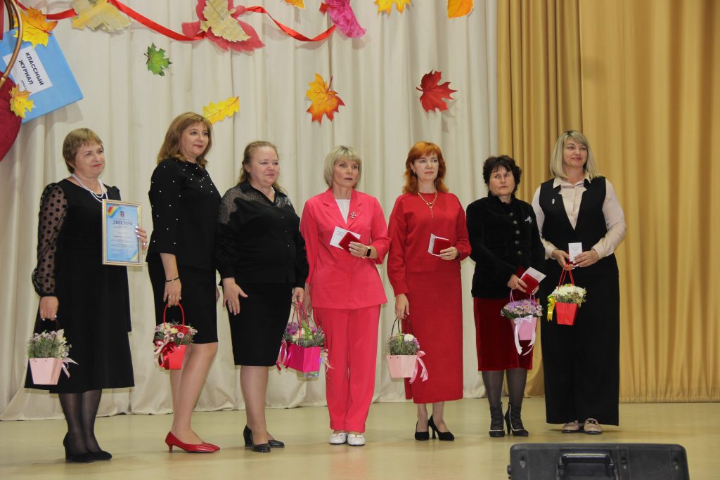 После традиционного прослушивания гимна РФ педагогов поздравила заместитель Главы города Гуково Н.Т. Обоймова и поблагодарила мощный педагогический коллектив за работу, которую он проводит во благо города. Она вручила высокие награды учителям. О.Б. Савельева, С.М. Сергеева, А.Ф. Ятина и И.В. Леонтьева были отмечены ведомственном знаком отличия Министерства просвещения Российской Федерации «Отличник Просвещения», а М.В. Озернова и Н.Н. Изварина – знаком «Почетный работник сферы образования Российской Федерации».