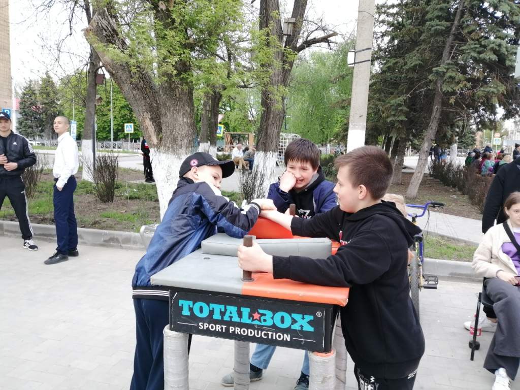 Специалисты Городской детской библиотеки провели для ребят игровую программу «А за окном весна!». В начале ведущая рассказала ребятам о празднике, они узнали о том, что он назывался День международной солидарности трудящихся и отмечался во многих странах мира демонстрациями. Затем детвора участвовали в играх и конкурсах на внимание, ловкость, сообразительность и скорость. На площадке «ЗОЖ», организованной специалистами СШ «Прометей», молодежь и подростки соревновались в армрестлинге.