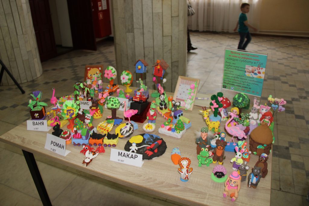 Также в фойе для детей проходил мастер-класс по лепке и была устроена красивая фотозона, где все желающие могли сделать фото на память с аниматорами в костюмах зайца и скомороха.