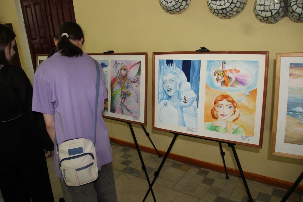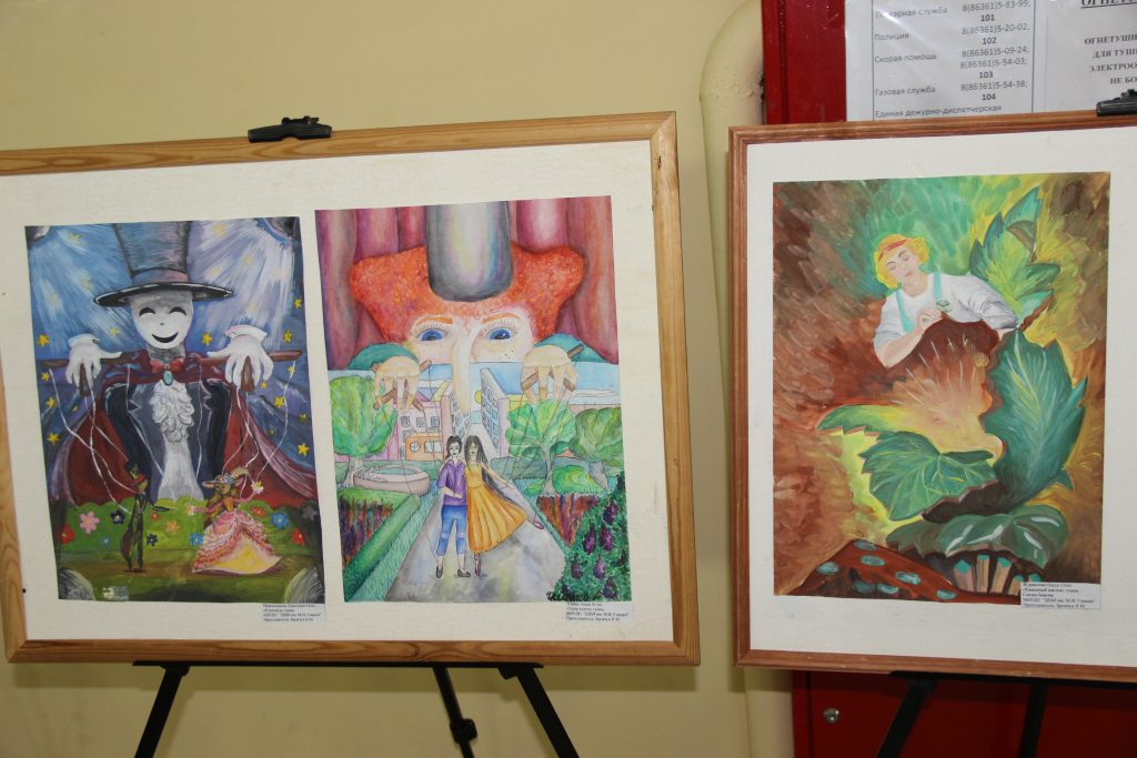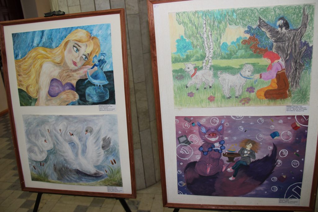 Не менее интересные работы воспитанников и педагогов Детской школы искусств имени М.И. Глинки украшали фойе Городского Дворца культуры, в экспозиции были представлены иллюстрации к известным литературным произведениям и русским народным сказкам.