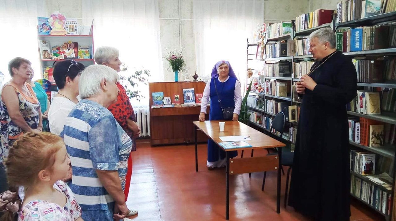 9 июля в городской библиотеке №1 состоялась очередная встреча настоятеля Свято-Казанского храма протоиерея Николая Быкова и сестры милосердия Натальи Чуприной с читателями библиотеки. Встреча была посвящена памятному дню святых Петра и Февронии, который празднуется в России 8 июля.