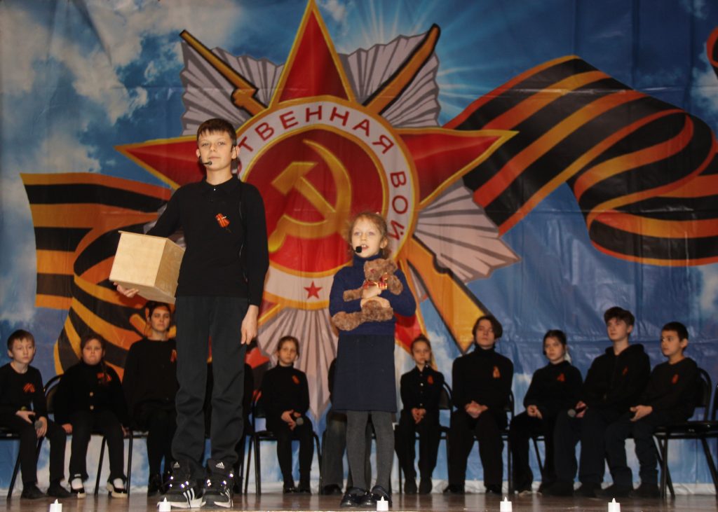 В преддверии 83-й годовщины освобождения города Гуково от немецко-фашистских захватчиков в Городском Дворце культуры для школьников и их родителей Образцовый детский театр «Улыбка» под руководством Валентины Алексеевны Николаевой представил постановку, основанную на поэтических произведениях о Великой Отечественной войне.