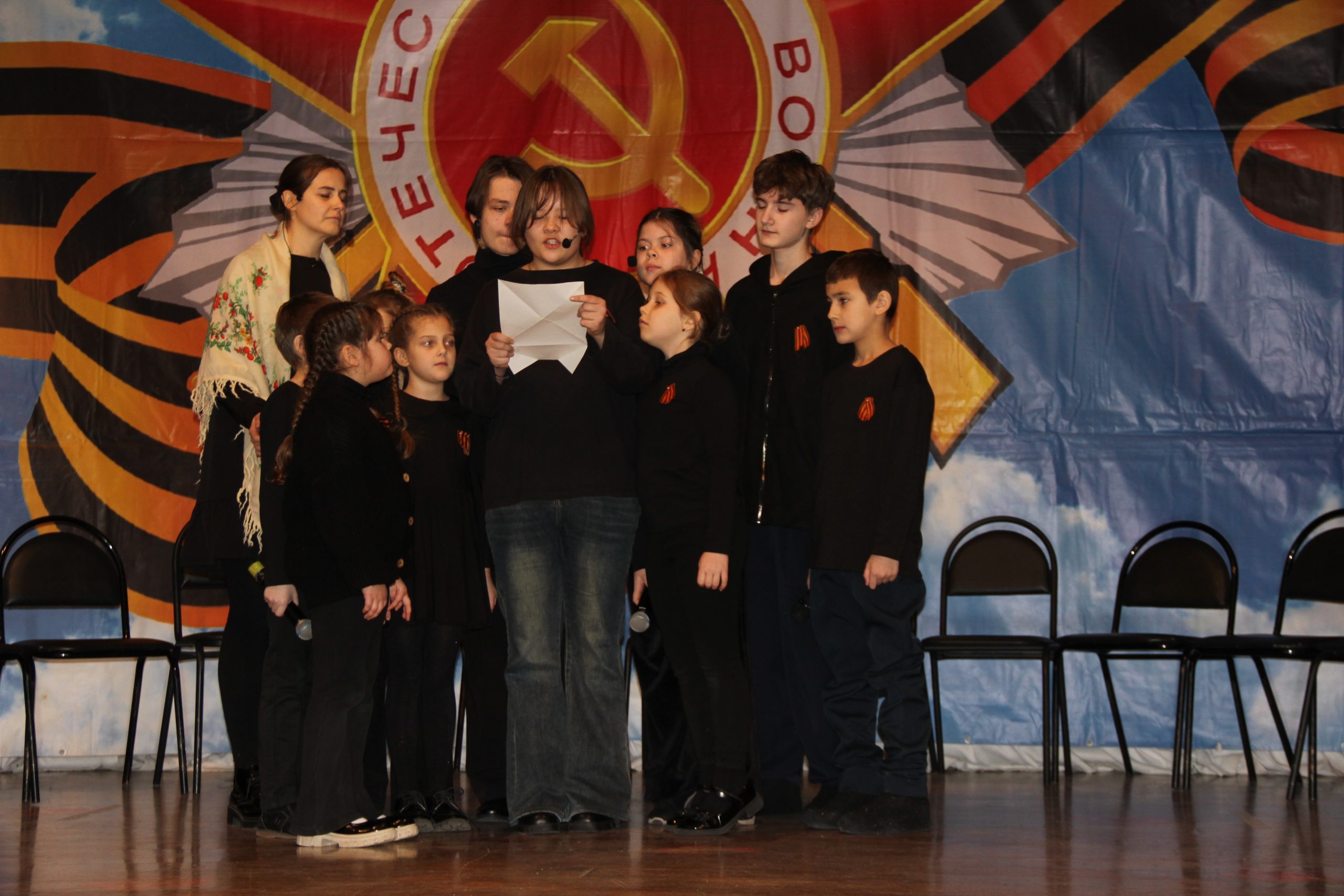 В преддверии 83-й годовщины освобождения города Гуково от немецко-фашистских захватчиков в Городском Дворце культуры для школьников и их родителей Образцовый детский театр «Улыбка» под руководством Валентины Алексеевны Николаевой представил постановку, основанную на поэтических произведениях о Великой Отечественной войне.