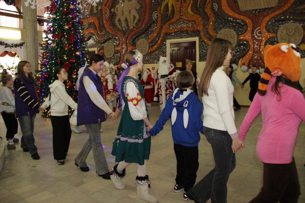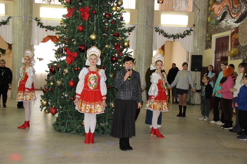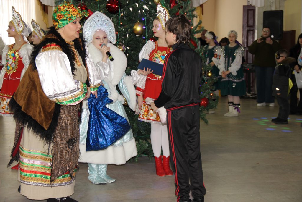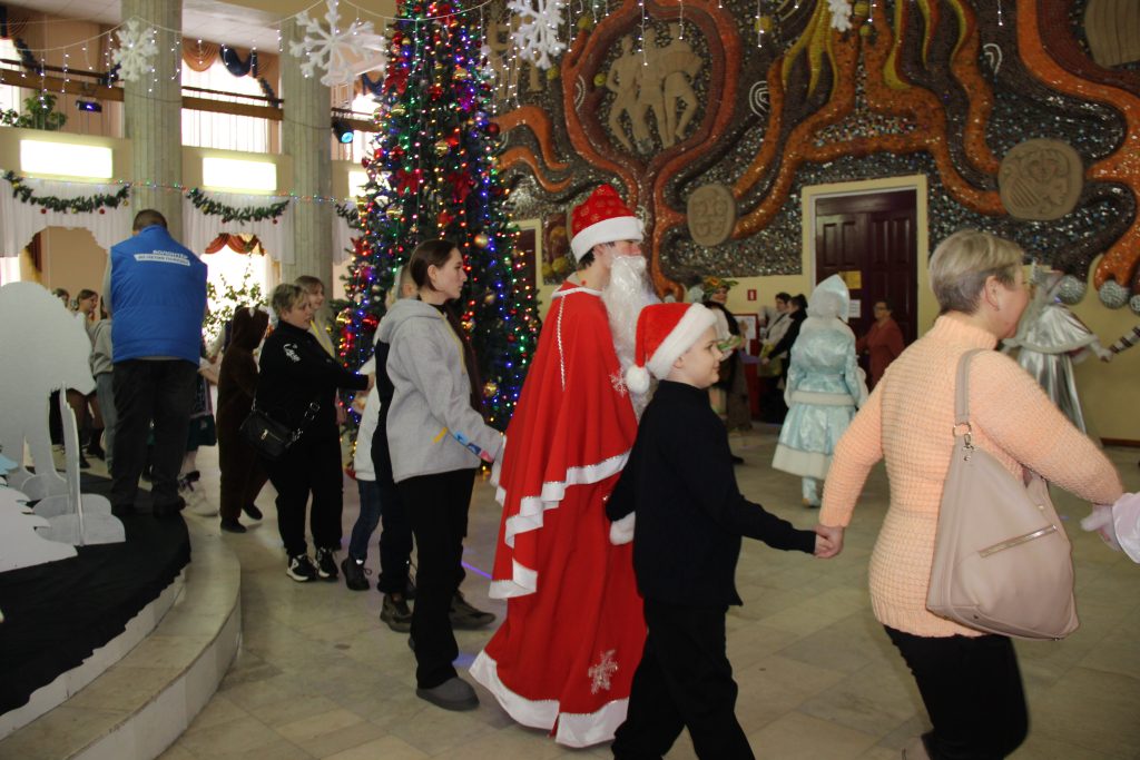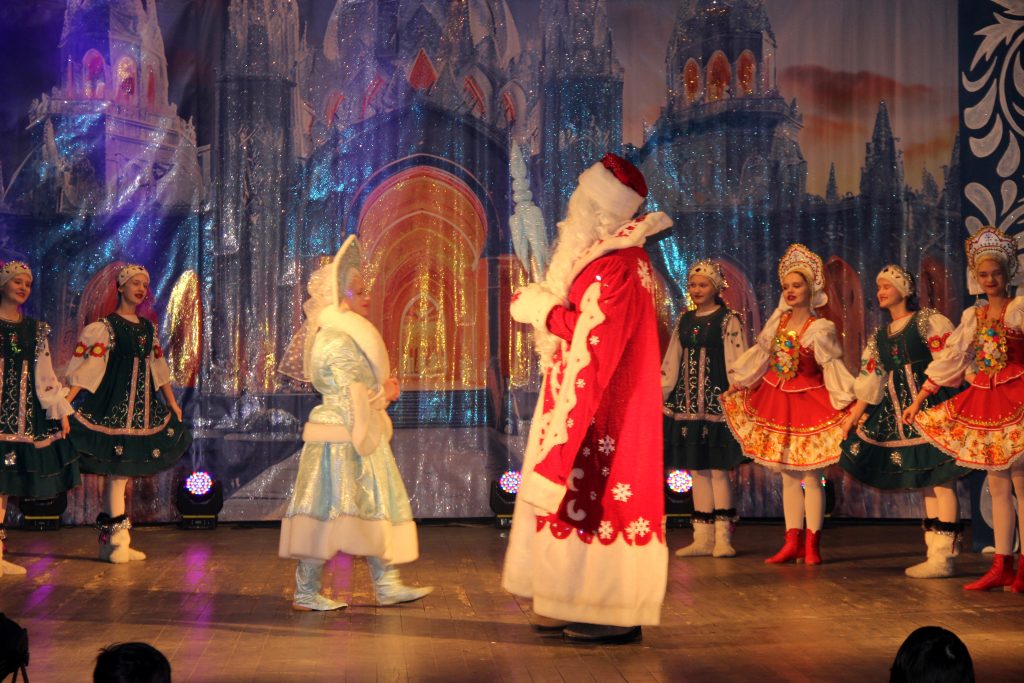 Сначала для ребят состоялось театрализованное представление, главными героями которого были Дед Мороз и Снегурочка, Кикимора, Баба Яга и другие сказочные персонажи. Творческий коллектив ГДК как всегда, был на высоте. Свои выступления также подарили воспитанники образцового ансамбля современного эстрадного танца «Эллада» и образцового хореографического ансамбля «Ритмы юности».