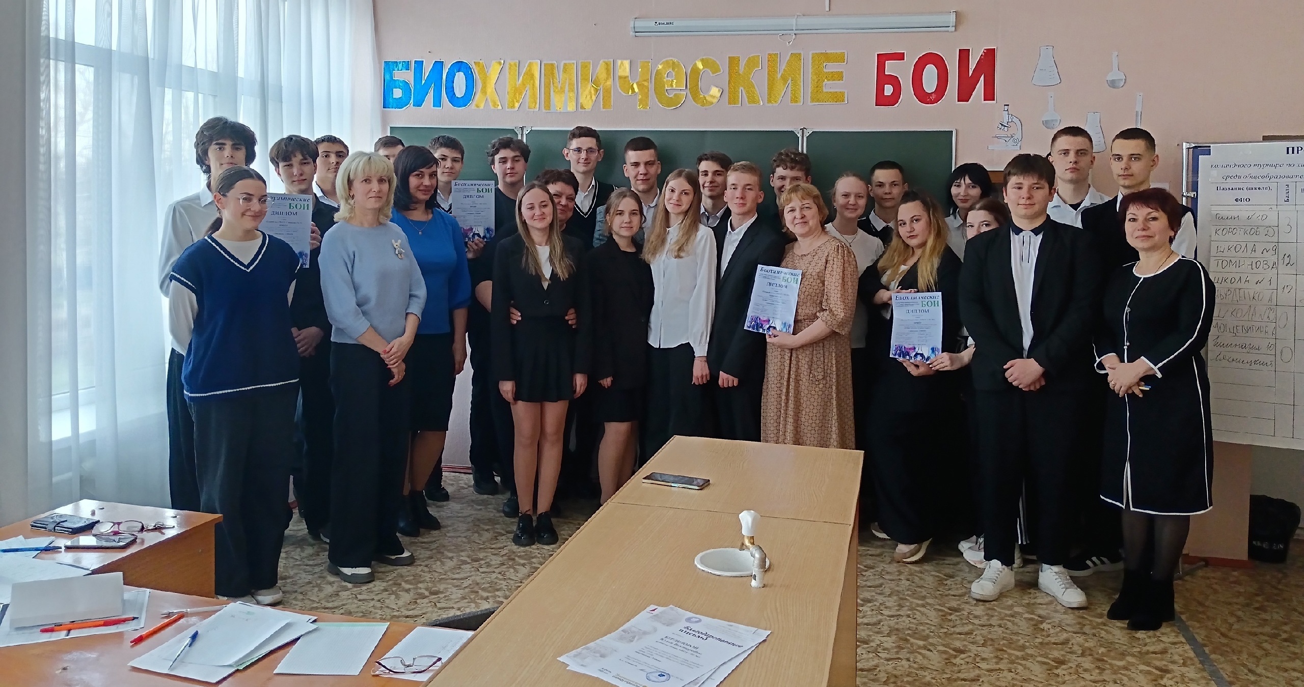 А в минувший четверг, 24 апреля, в нашей школе №9 снова состоялся увлекательный турнир «Биохимические бои», но теперь по направлению «Биология». В соревнованиях участвовали команды из гимназии №10, школ №№9, 15 и 23. Каждая команда готовилась к этому событию с большим упорством, ведь это не только возможность продемонстрировать свои знания, но и шанс завести новые знакомства и обменяться опытом с другими участниками!